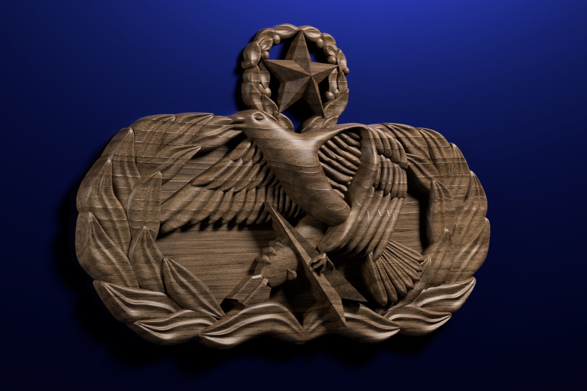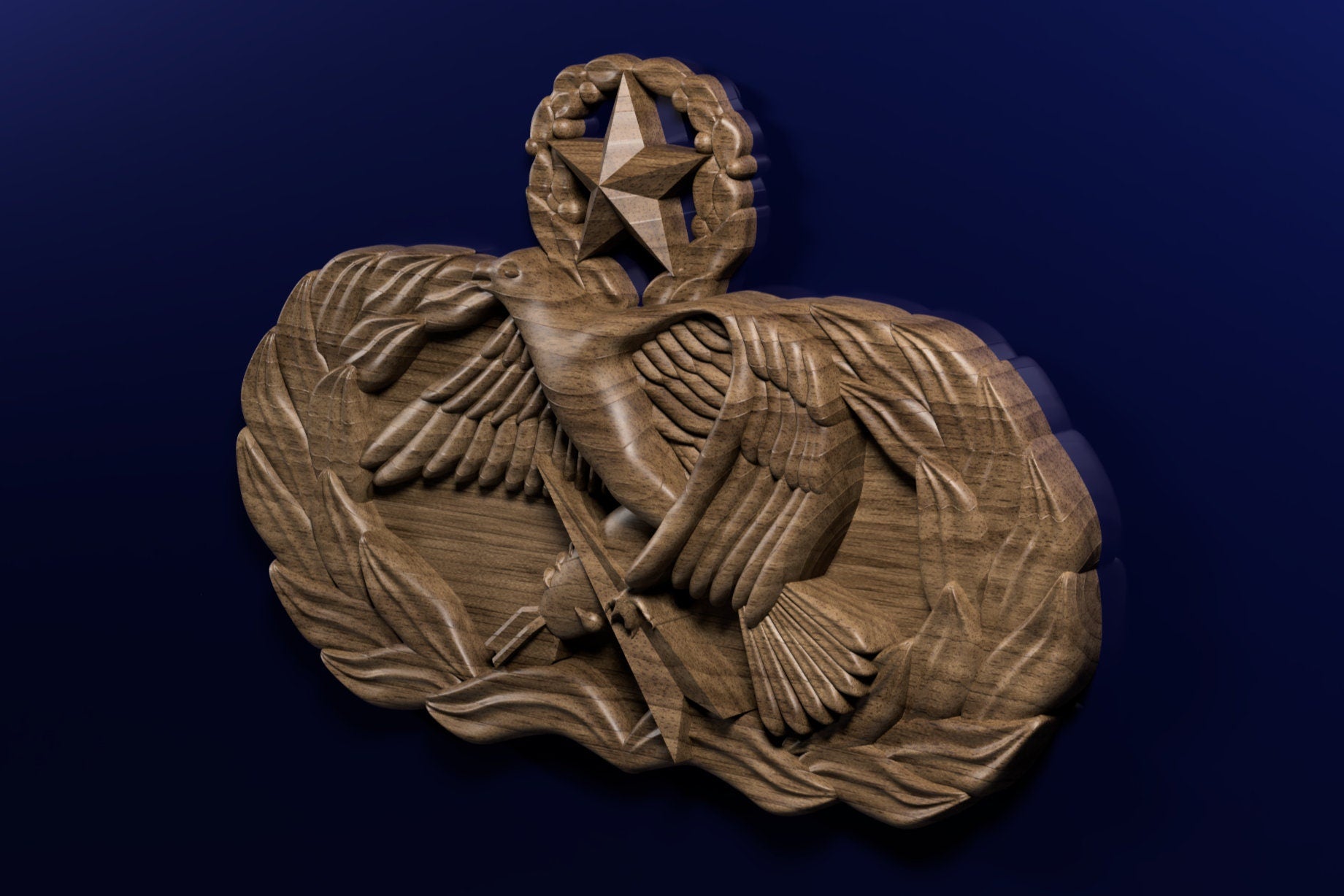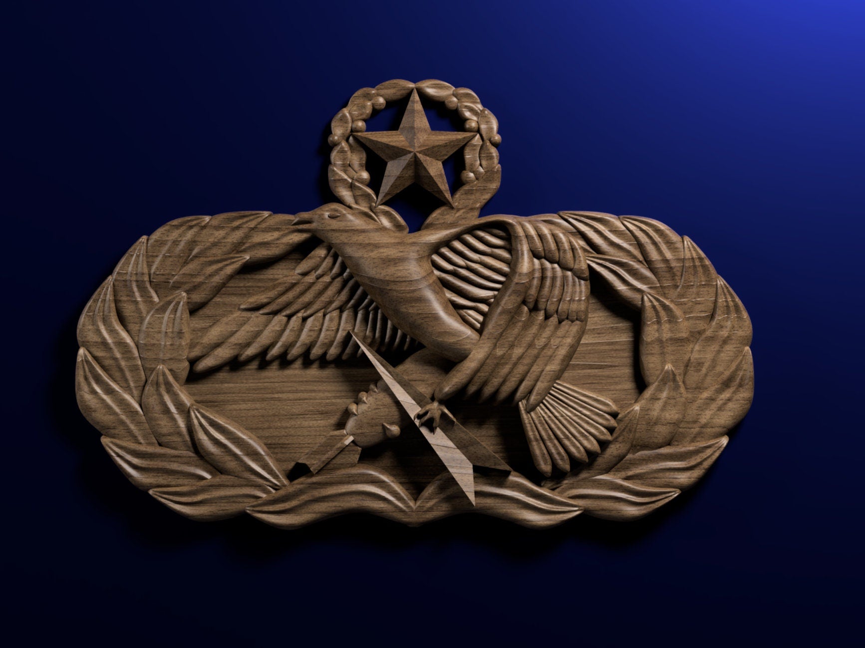 Air Force Maintenance Superintendent (9-level) Badge 3D stl file. This file may be used for CNC machining or 3D printing.