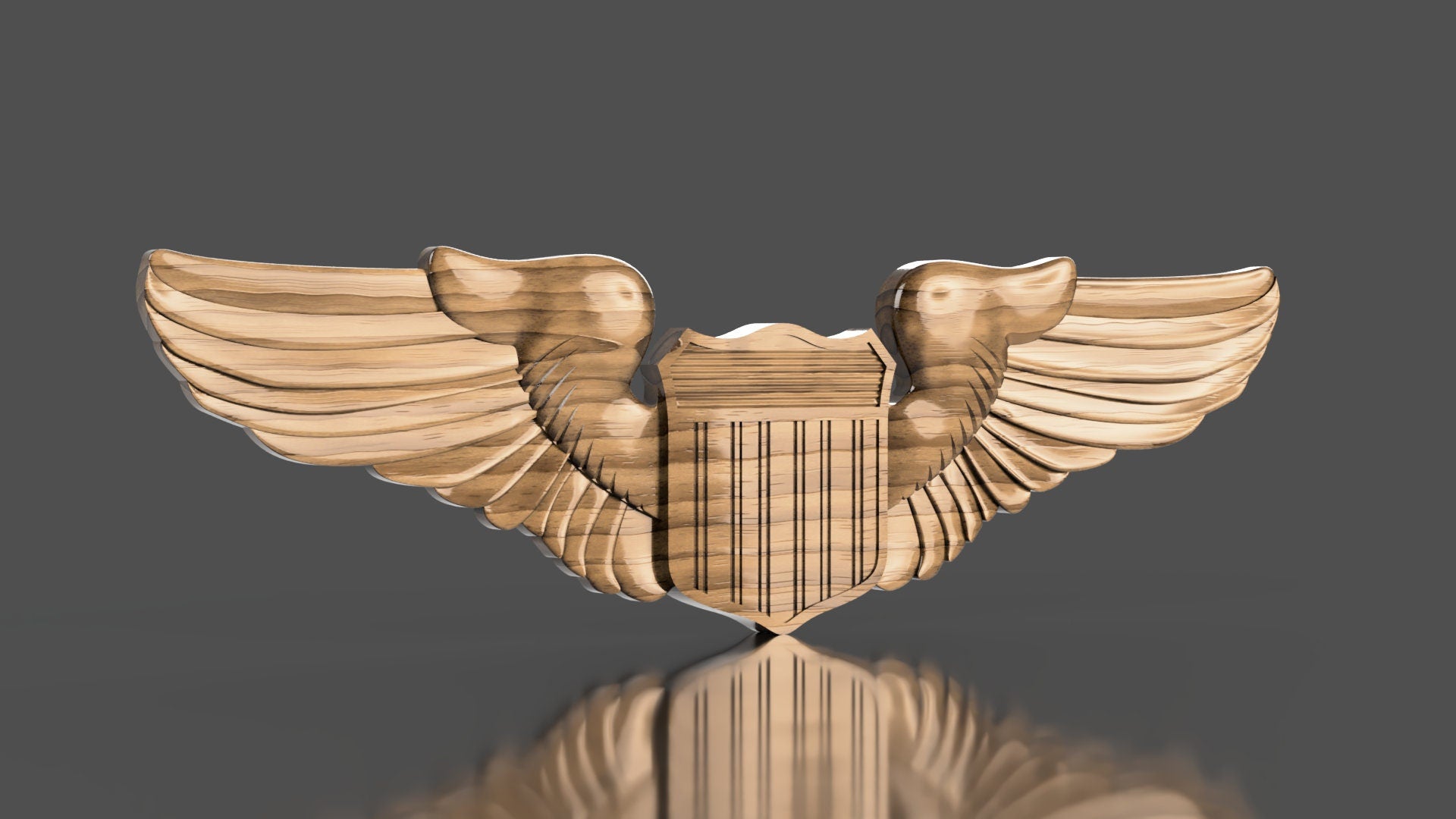 US Air Force Pilot Badge 3D stl file. This file may be used for CNC machining or 3D printing.