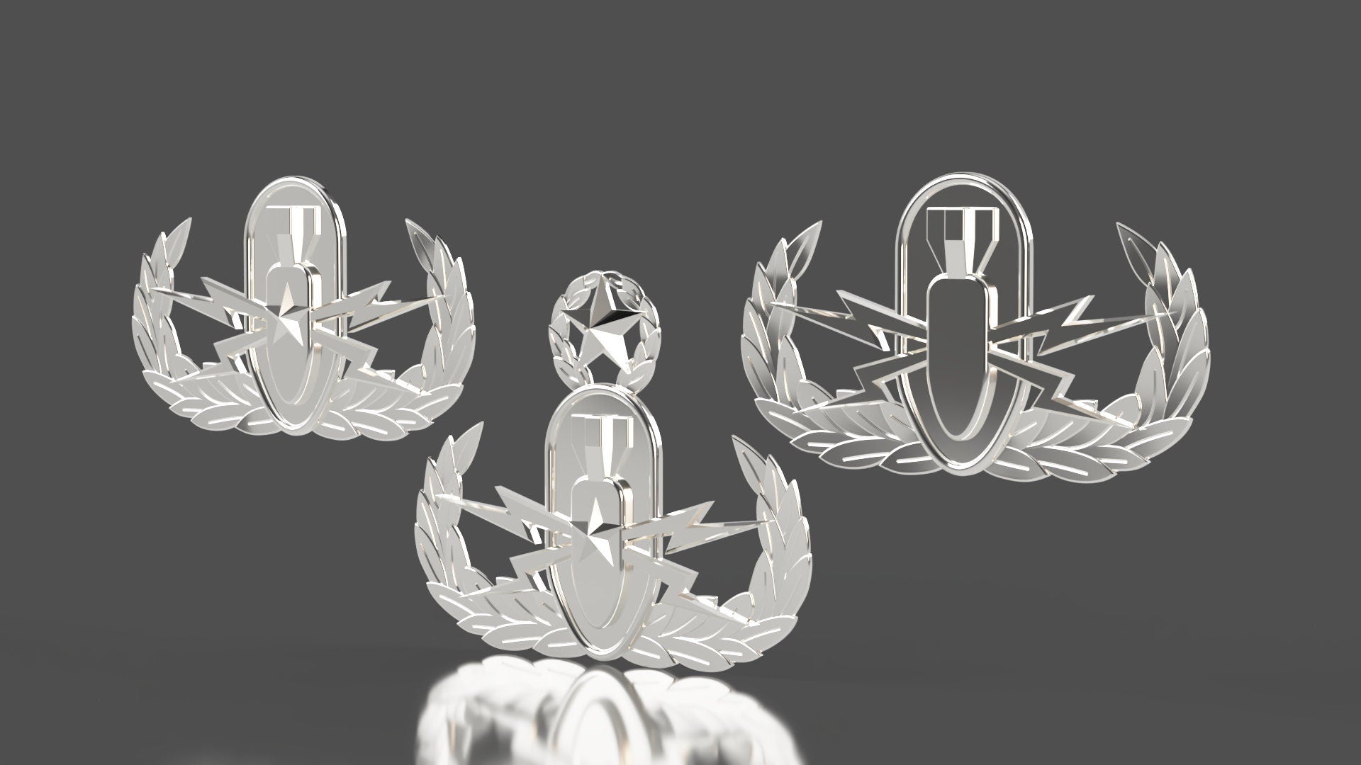 CAD modeled US Armed Forces Master/Senior/Basic Explosive Ordinance Disposable (EOD) Badge file. This file may be used for CNC machining or 3D printing.