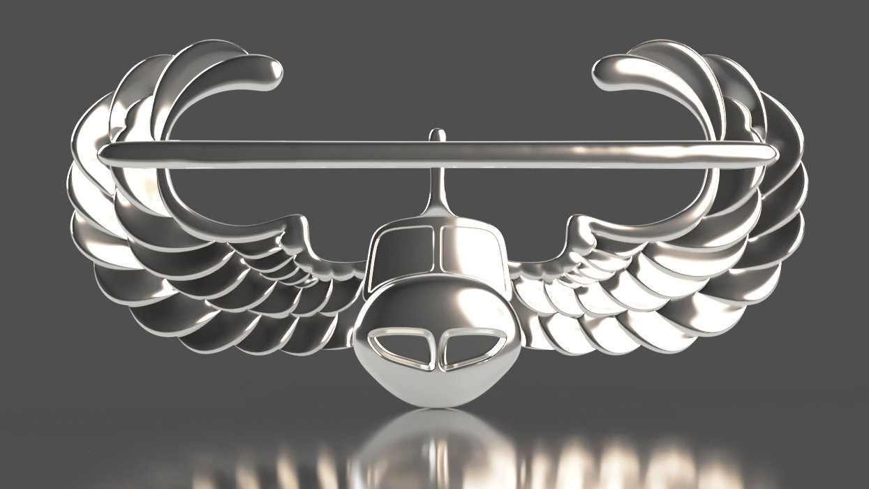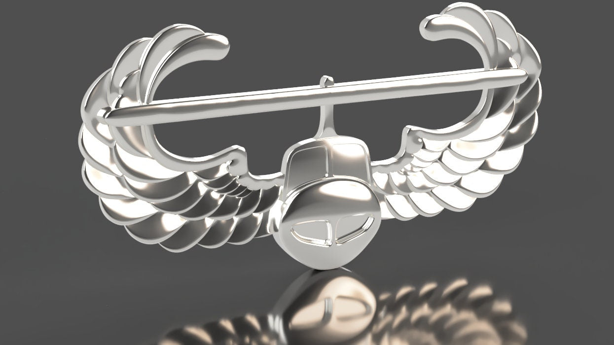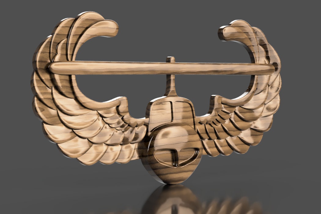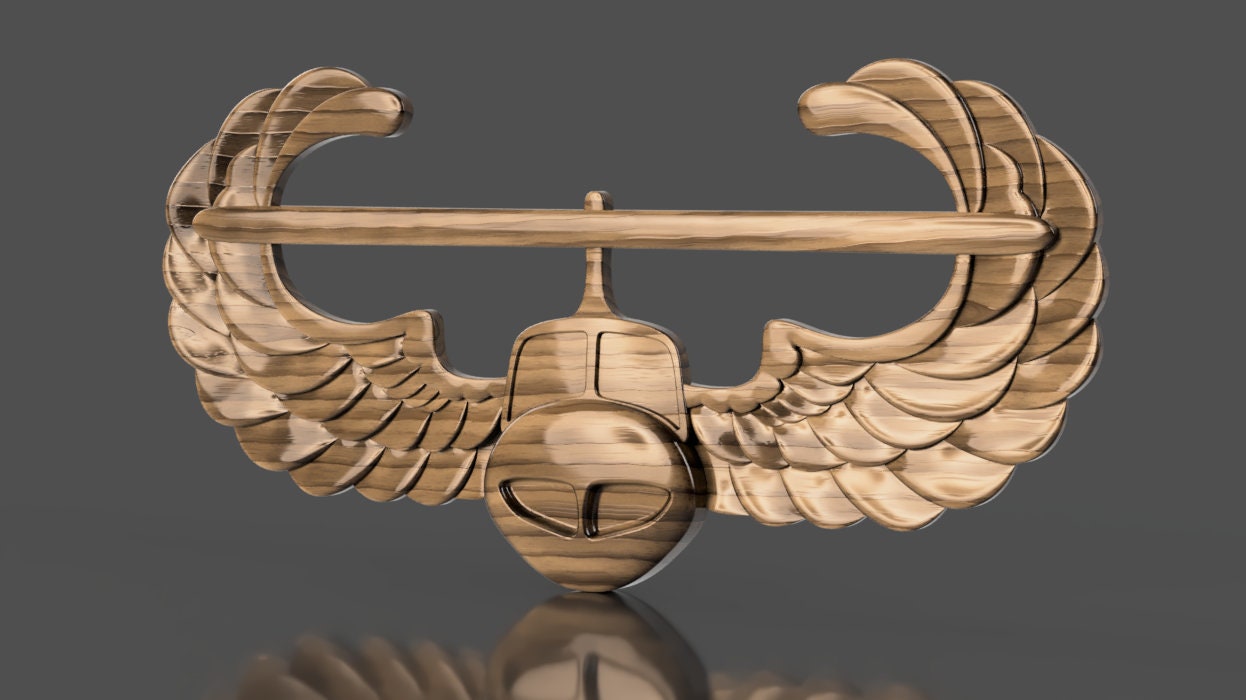 CAD modeled Army air assault badge STL file. This file may be used for CNC machining or 3D printing.