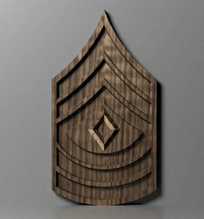 CAD modeled Army First Sergeant (1SG) file. This file may be used for CNC machining or 3D printing.