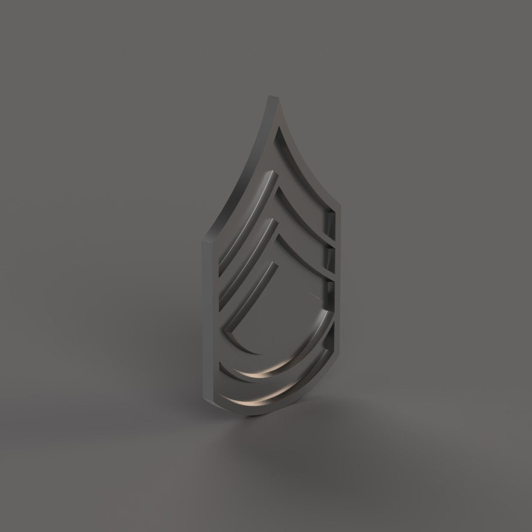 CAD modeled US Army Sergeant First Class (SFC) file. This file may be used for CNC machining or 3D printing.
