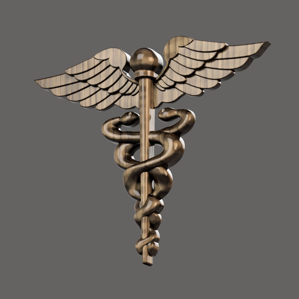 CAD modeled Caduceus stl file for CNC router file. This file may be used for CNC machining or 3D printing.