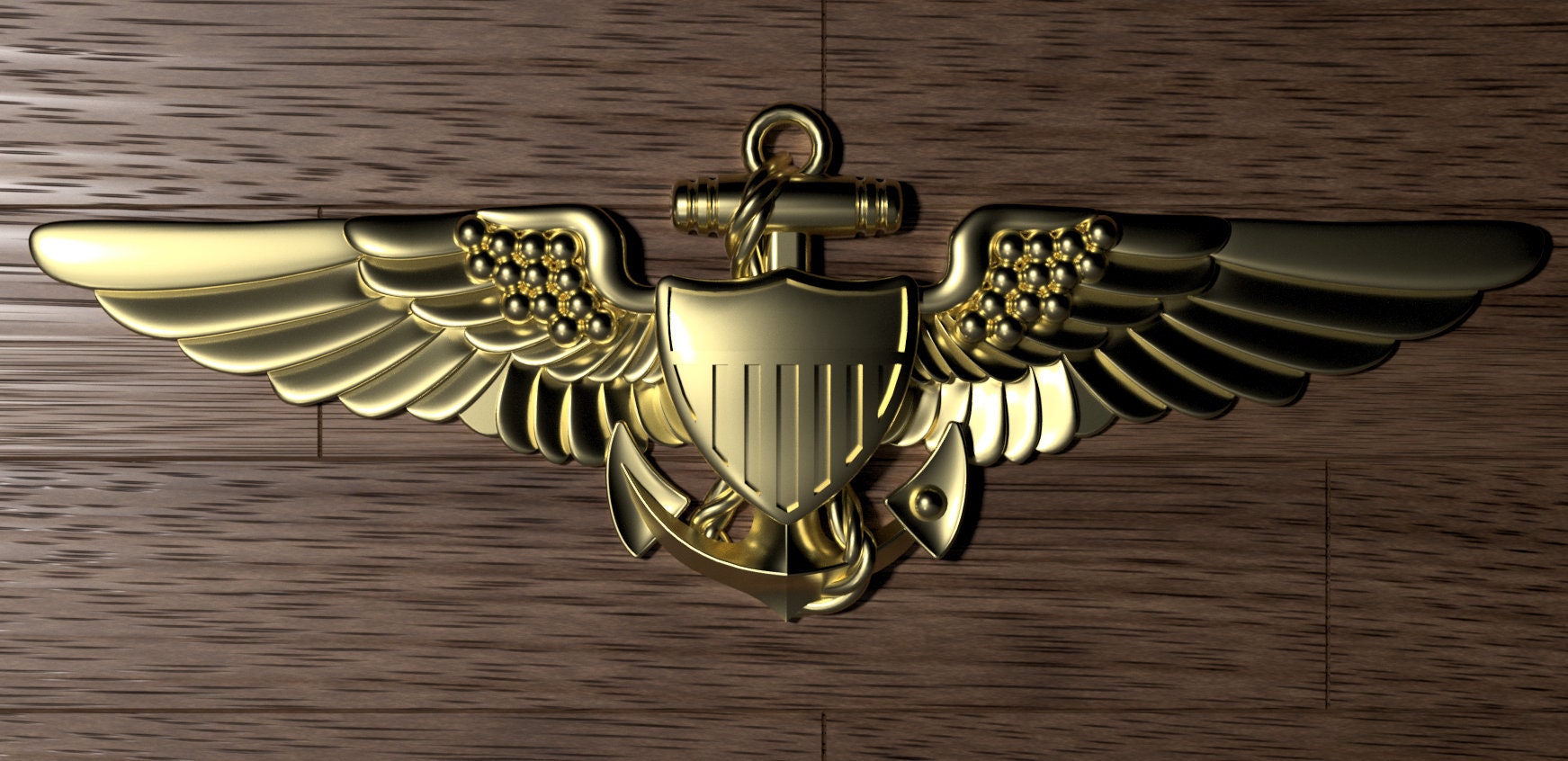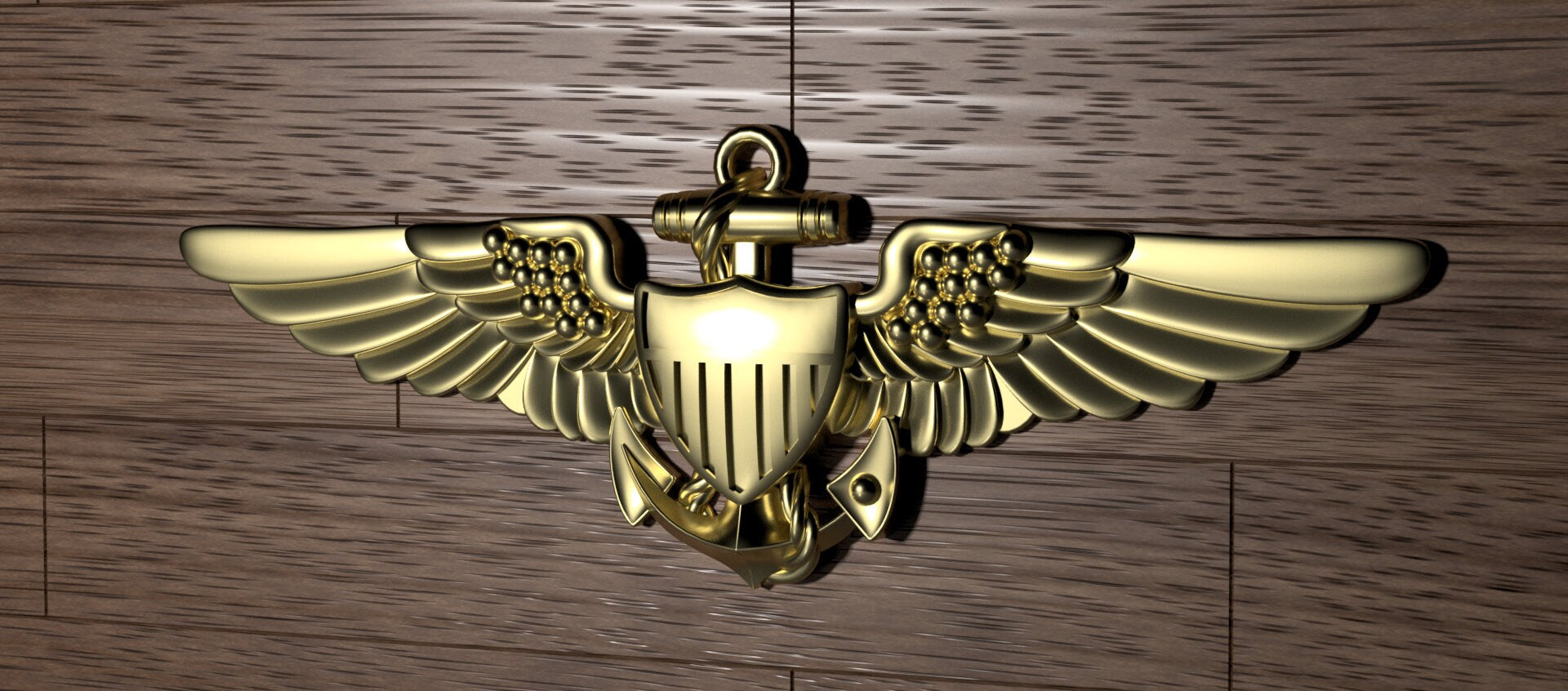 CAD modeled Naval Aviator insignia. This file may be used for CNC machining or 3D printing.