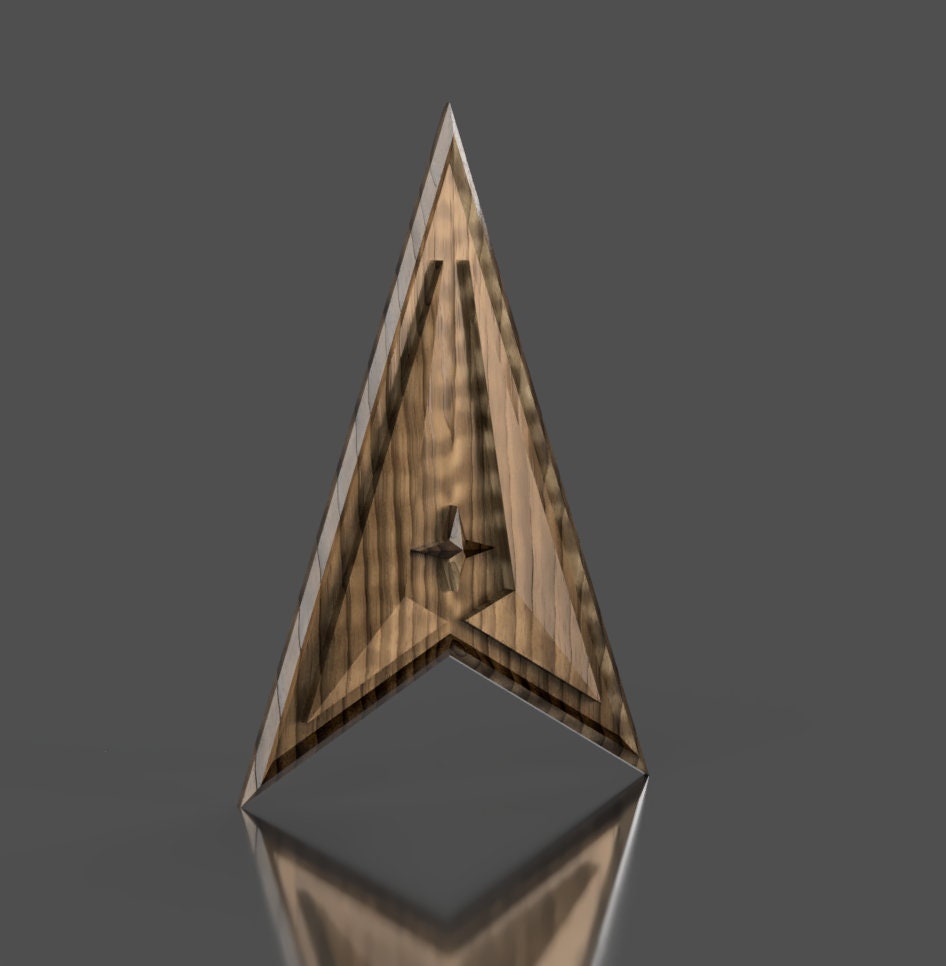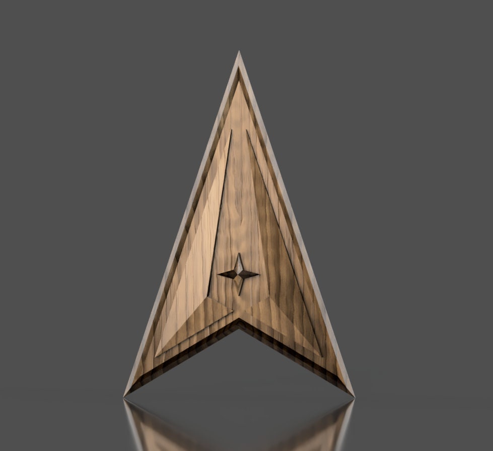 CAD modeled United States Space Force (USSF) insignia STL file. This file may be used for CNC machining or 3D printing.